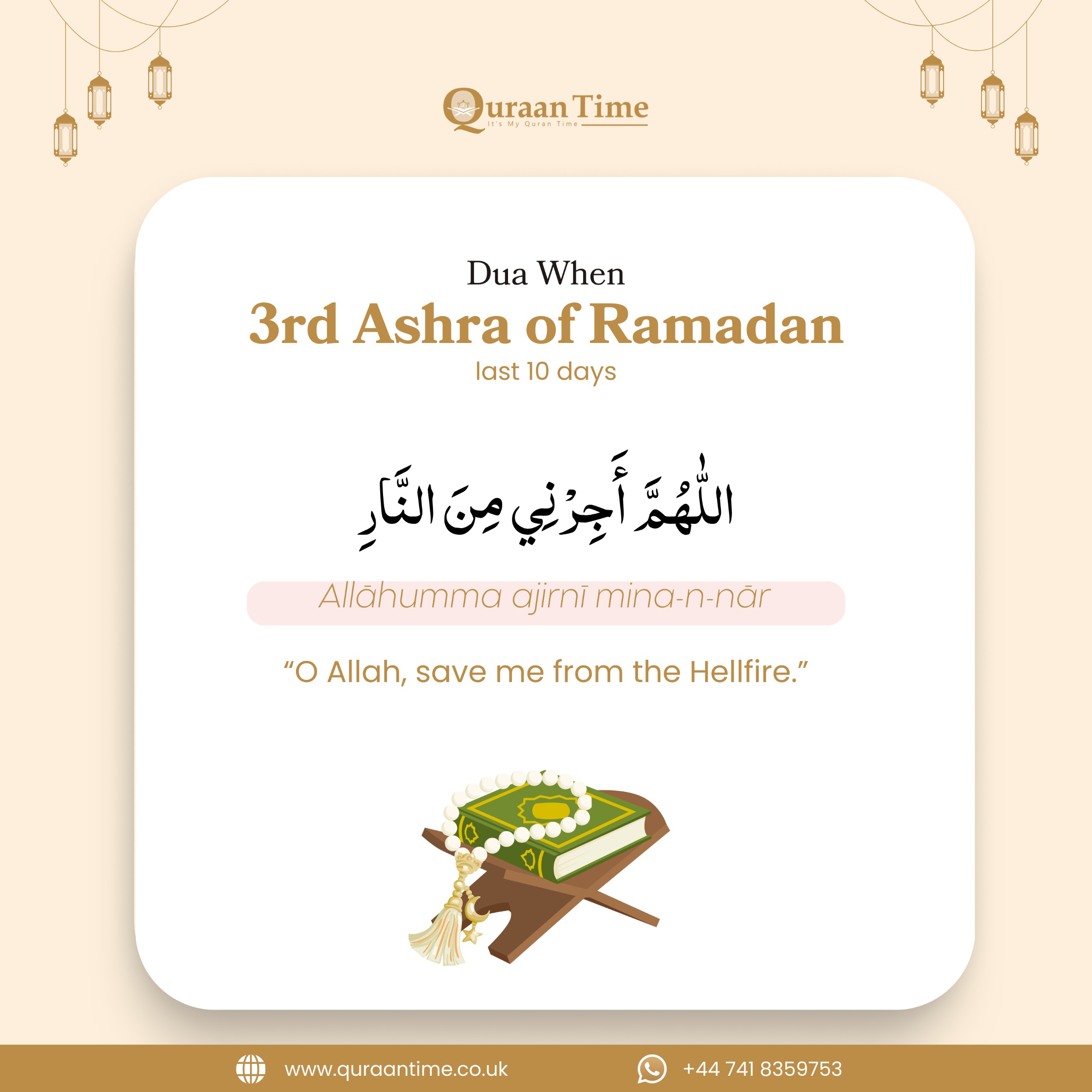 The third Ashra (last ten days) is the period of seeking refuge from hellfire. The Prophet ﷺ would strive in worship and constantly make this dua.